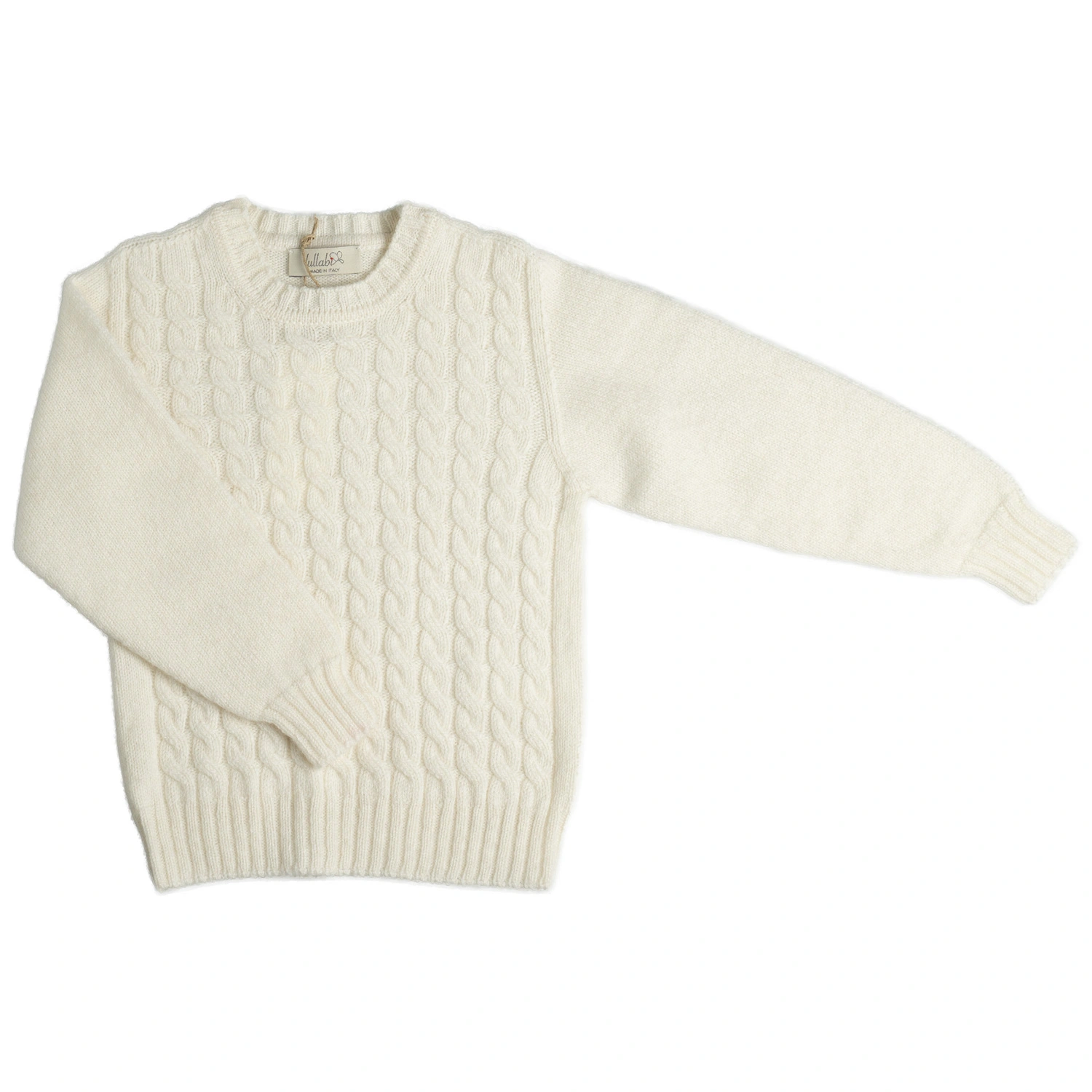 Felpa in lana e cashmere 40% Merinos extra fine, 10% Cashmere, 30% Viscosa, 20% Poliammide, che offre comfort e calore al tuo bambino.