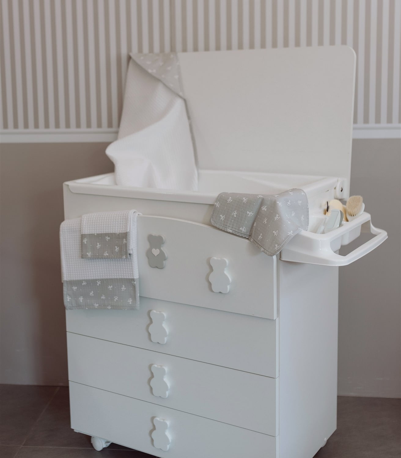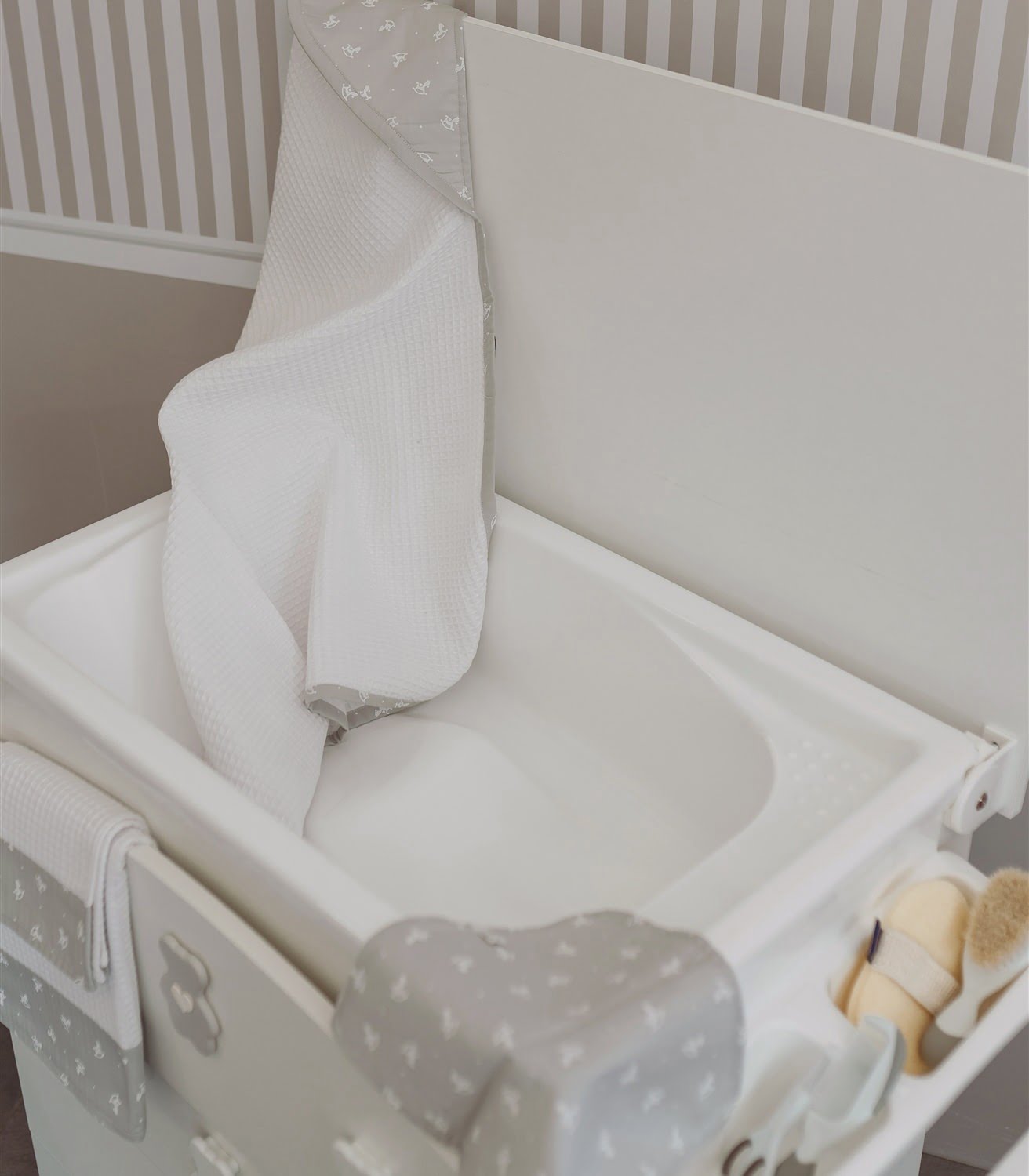 L’asciugamano XL con la sua lavetta sono una combo davvero irresistibile in cotone 100% nido d’ape materiale morbido e delicato che accoglie e mantiene asciutto il neonato dopo il bagnetto